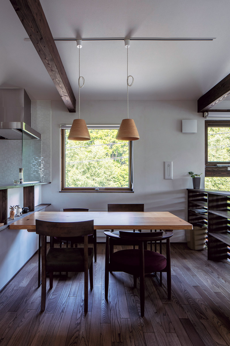 緑を眺める暮らしを楽しみたいという思いから、当初からロケーションを生かせる2階リビングを希望していたご夫妻。緑のトンネルのような遊歩道がある緑地と公園に囲まれた住まいで、四季折々に移りゆく自然風景を楽しむ暮らしを満喫しています。