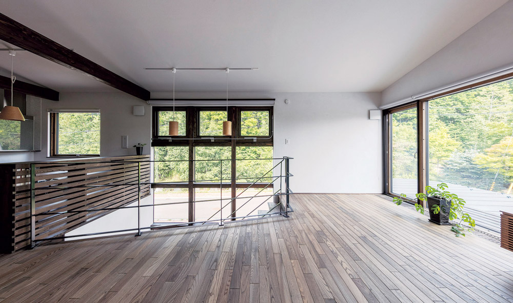 緑地を見渡せる大きな窓があるリビングは、通風を計算して窓を配置したため夏涼しく、窓を開けておくと家の中を心地よい風が通り抜け、エアコンも必要ないとか。「もしかして冬は寒いかも…」という懸念も、ひと冬を過ごして家中が暖かく、住まいの性能の良さを改めて実感したそうです。