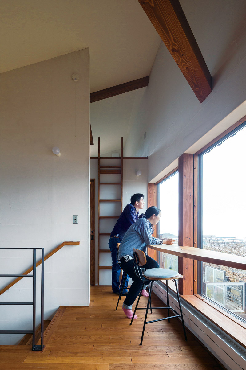 お子さんの誕生を待ちながら、「壁に穴を空けてロフトからマルチスペースに出入りできるようにしたら子どもが喜びそう」「リビングの上にもうひとつ部屋をつくれるかも?」など、家の今後を話すのも楽しいひと時。最高の眺めはそのままに、柔軟に形を変える「余白」がライフステージに合わせた暮らしを実現します。