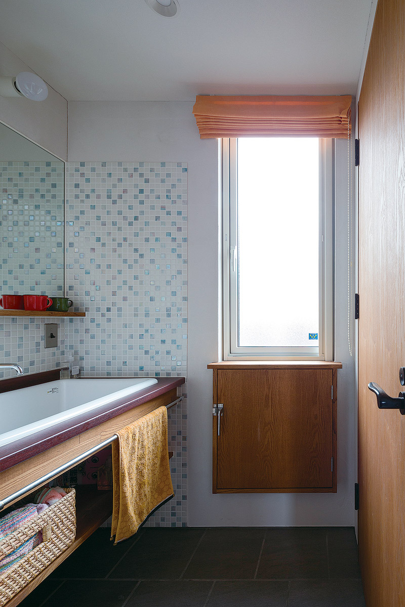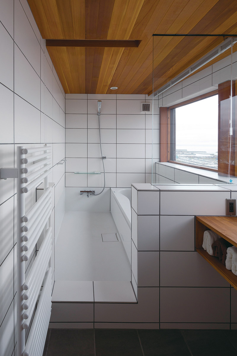 Kさんは、この土地に出会う前から新築はSUDOホームでと決めていたそう。同僚など周囲に数人、同社の家に住んでいる人がおり、その温かい雰囲気に引かれたと話します。彼らの家でいいなと思った部分は積極的に取り入れました。建物から突き出したインナーテラスもそのひとつ。美しい夕焼けを見ながらの焼肉スペースとして活用しています。この眺めを最大限に生かす。それはこの家の設計を任された同社の深瀬正人さんが一番こだわったことです。「単にリビングから景色が見えるようにしたんじゃだめだと思ったんです」と、バスルームやロフトからも海が見えるよう配置しています。