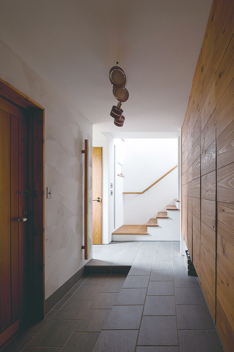 床/北海道産ニレフローリング、壁/珪藻土入塗材、天井/珪藻土入クロス