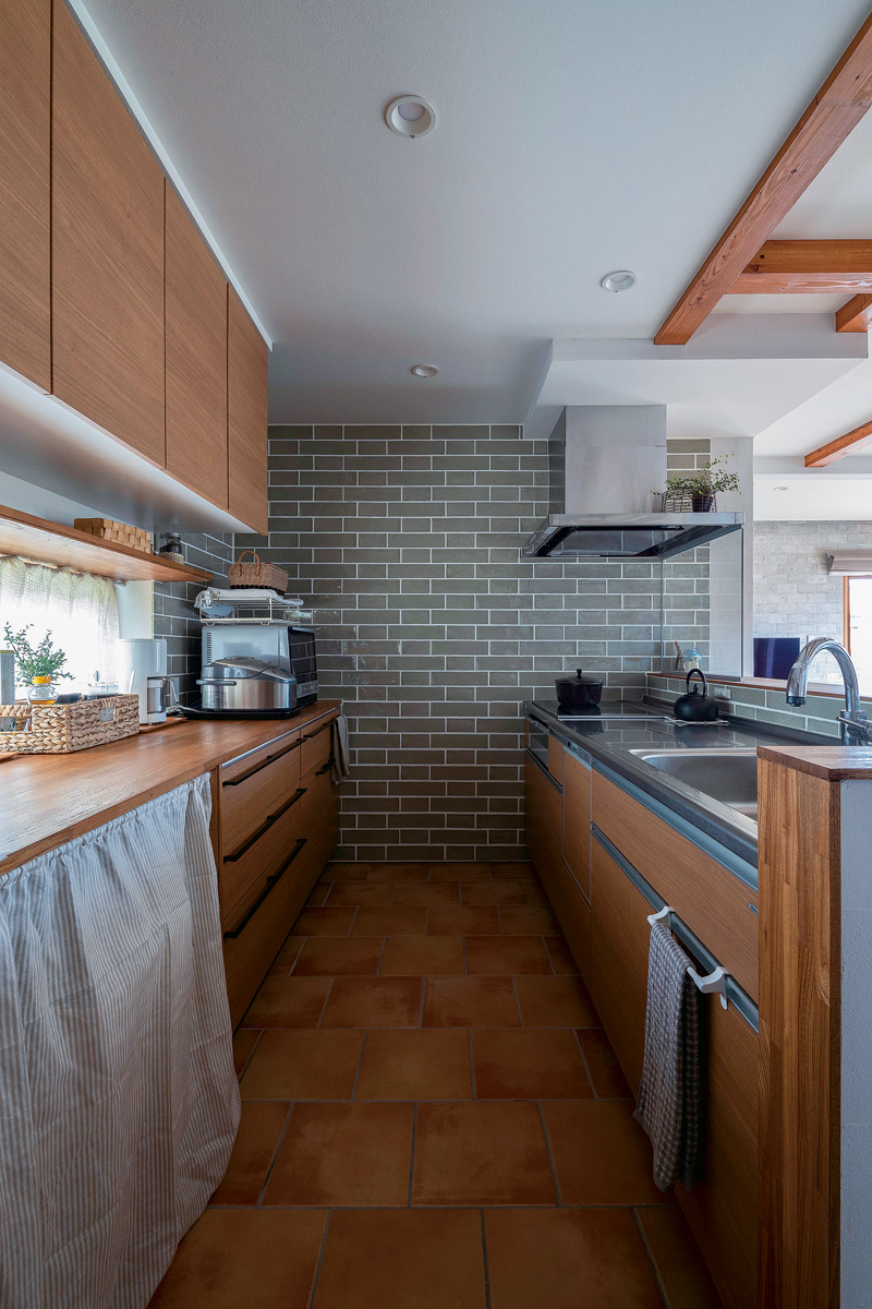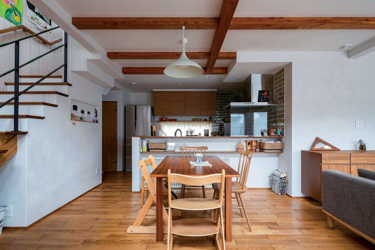 小学生と幼稚園児、そして2歳児と3人の子どもたちが元気いっぱいに駆け回るMさん宅。南向きにこだわって探した土地に建つこの家は、太陽の光が室内を明るく照らします。Mさんが電気工事のお仕事をしていることもあり、新居は太陽光発電を搭載したオール電化仕様に。「イニシャルコストはかかりましたが、光熱費はほぼゼロですね」と満足の様子です。