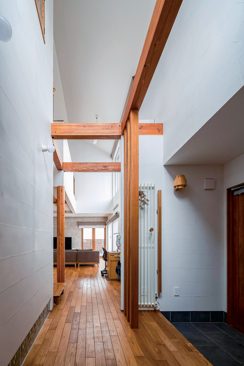 床/北海道産ニレフローリング、壁/珪藻土入塗壁、天井/珪藻土入クロス