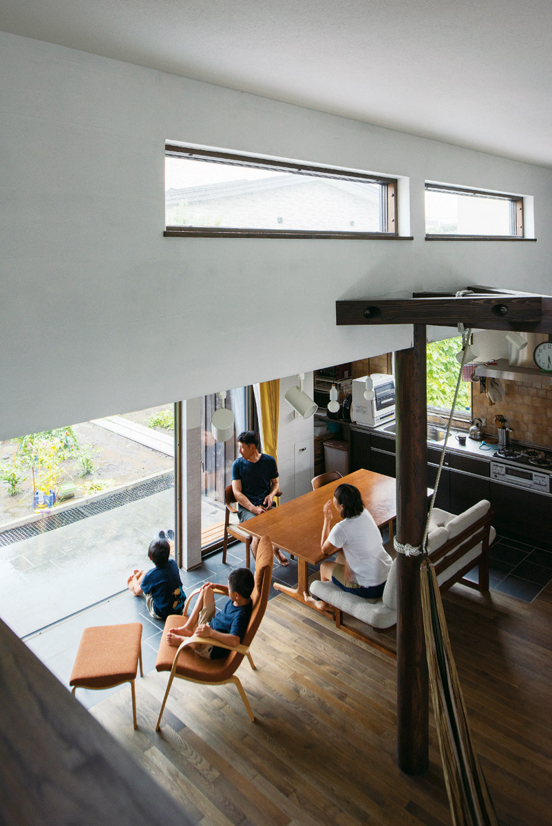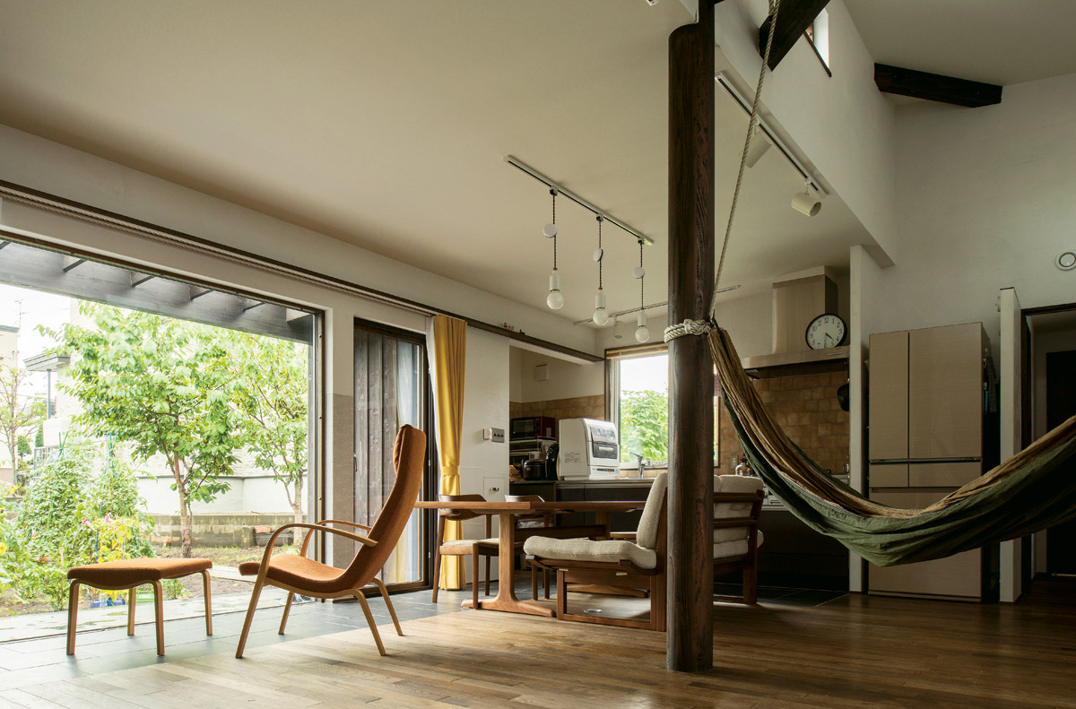 「昔買ったけど使わずにいたハンモックやバリ島の雑貨が役立って嬉しいです。子どもたちも家の中で遊べてのびのびと楽しそう。屋根付きテラスのおかげで、BBQの回数も増えました。半地下の書斎は家族みんなで使えるスペースで便利です」と新居での楽しい暮らしに奥さんは大満足のご様子。