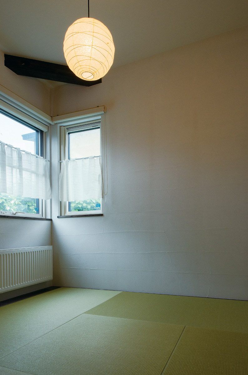 床/北海道産ニレ無垢材、壁/珪藻土入塗壁、天井/珪藻土入クロス