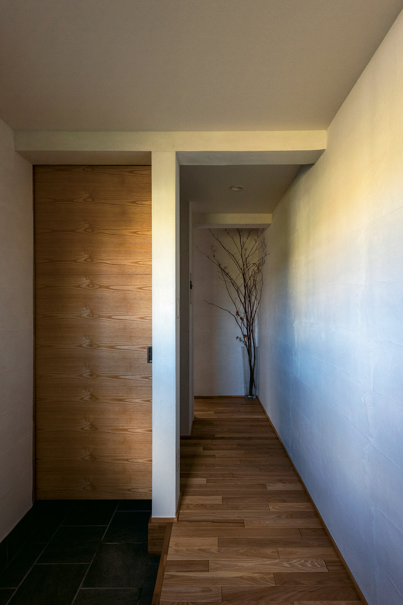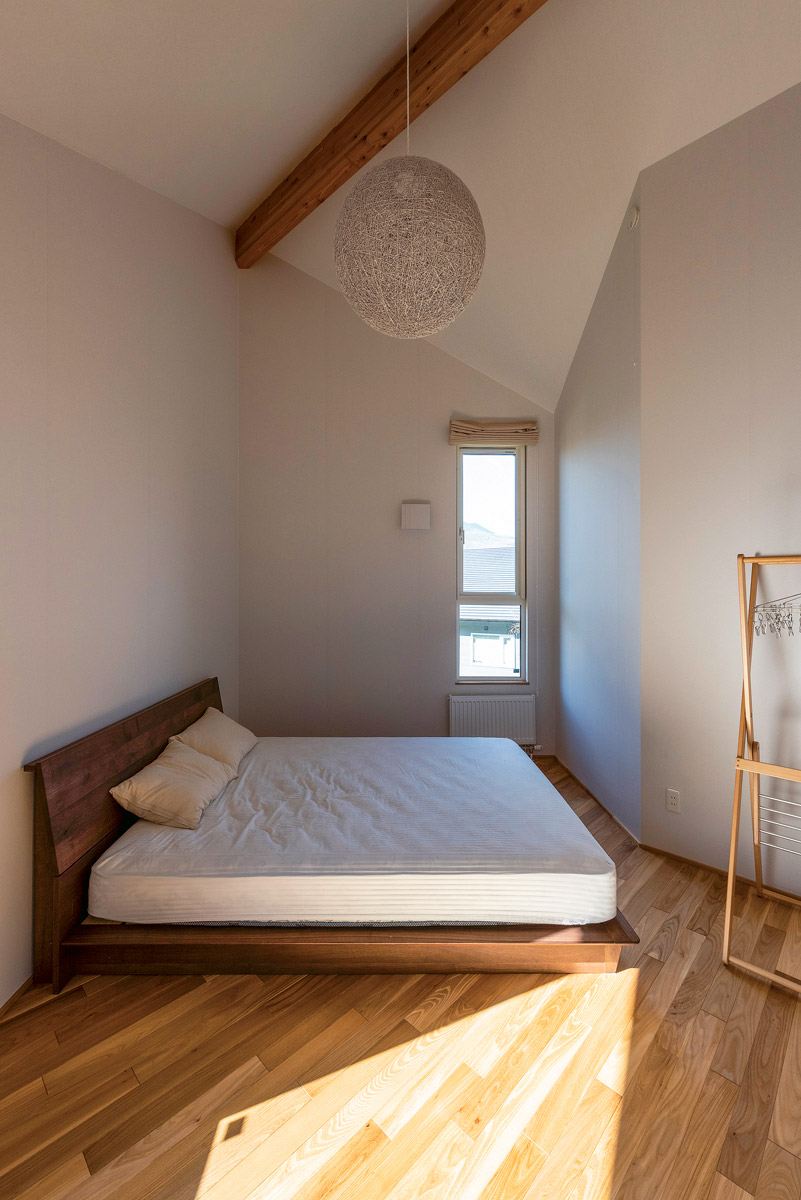 床/北海道産ニレフローリング、壁/珪藻土入塗壁 一部道産スギ板張、天井/珪藻土入クロス
