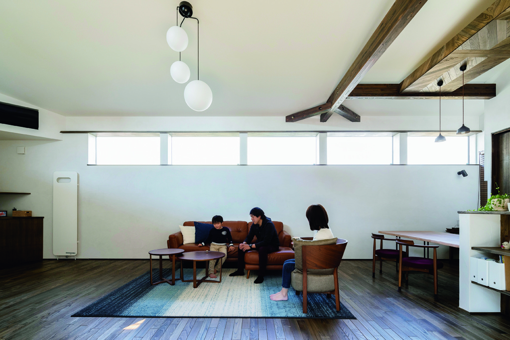 熱源システムには、設備関係という職業柄Sさんが興味を持っていたというガスで発電するシステム「COREMO」を採用。売電も可能で、発電の際に余った熱は床暖房にまわすことができます。これまでは古い一戸建てに住んでいたため、冬はストーブを焚いても寒かったと話しますが、はじめての冬に新居を暖めたのは床暖房とパネルヒーター。光熱費にも満足しています。