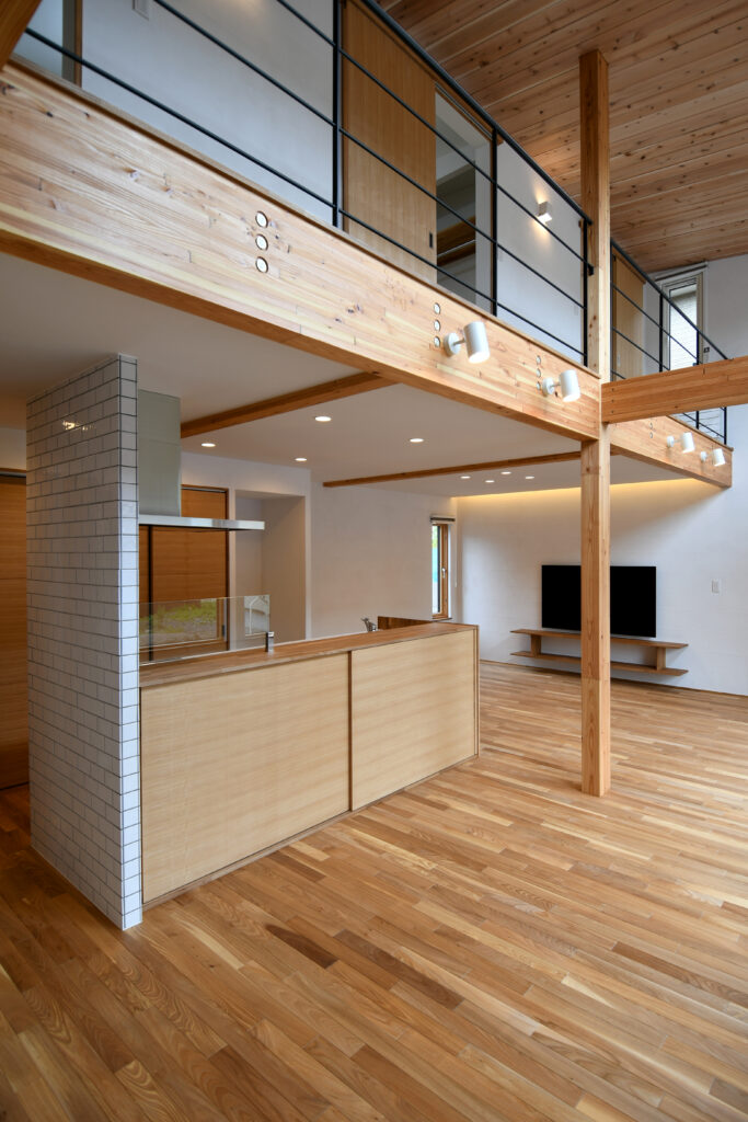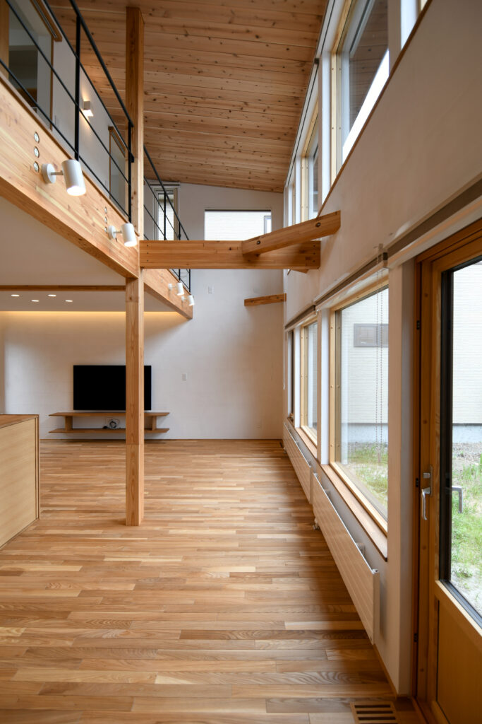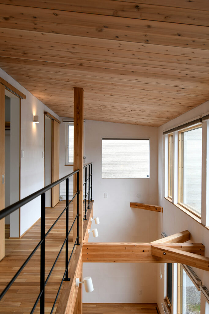 吹抜けにある大きな開口から陽光が降り注ぐ「なついろのいえ」