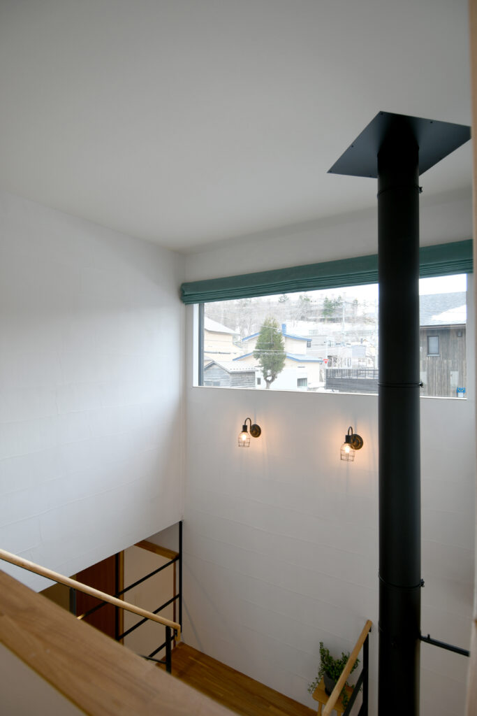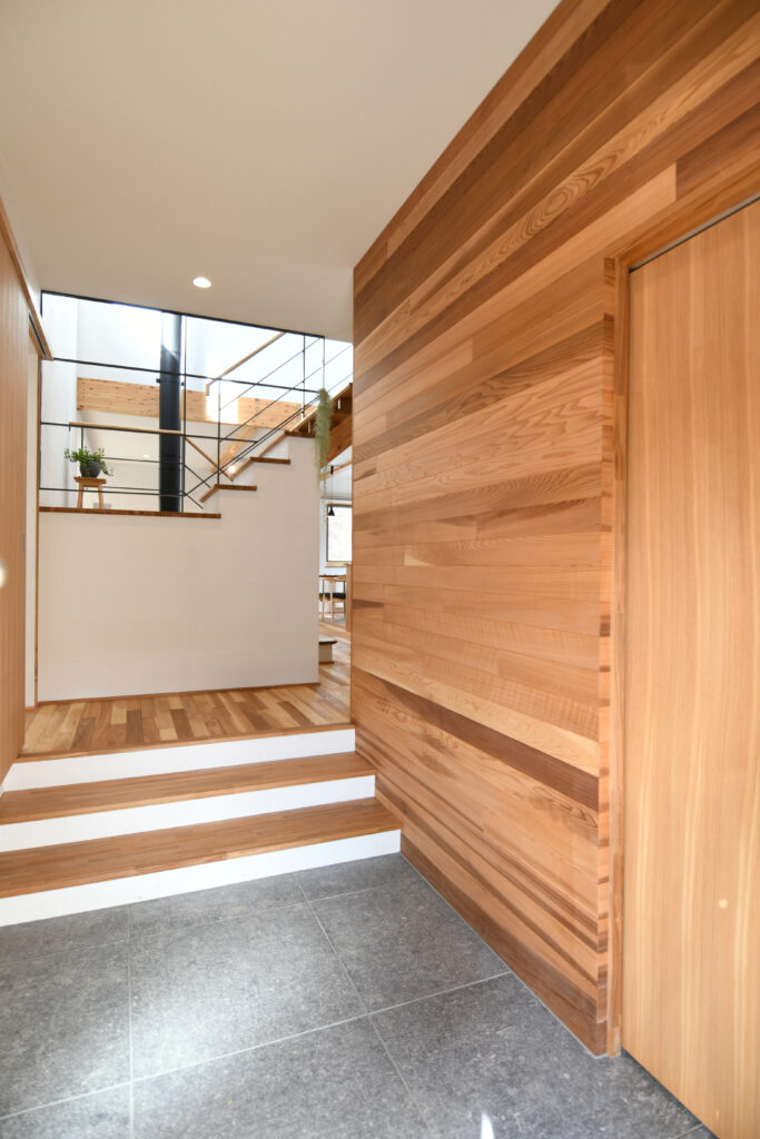 - 玄関から階段越しにリビングへつながる開放感ある暮らし