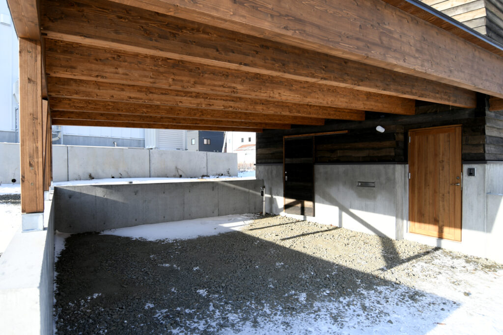 - 屋根付アプローチに外物置を設けスッキリした暮らし