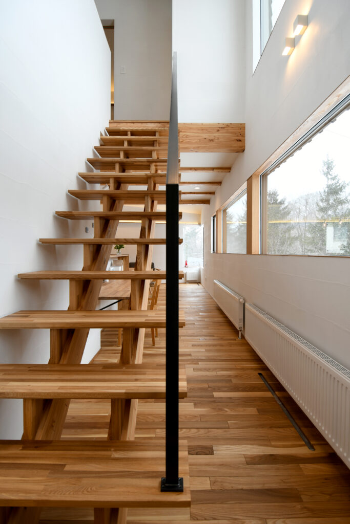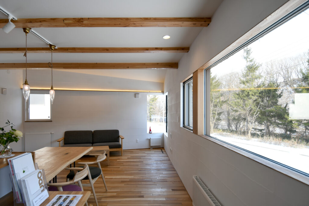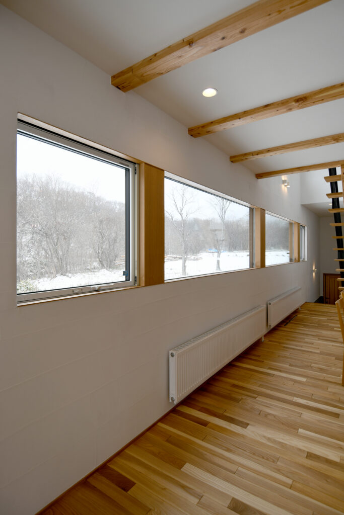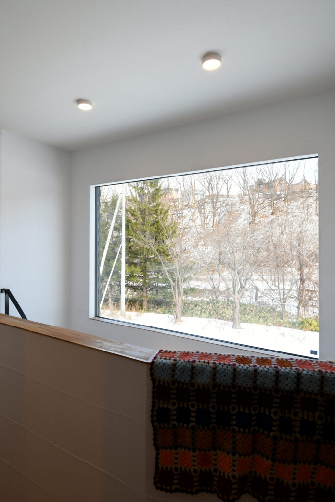 連結窓からパノラマに見える景色を眺める 「いろどりを映すいえ」