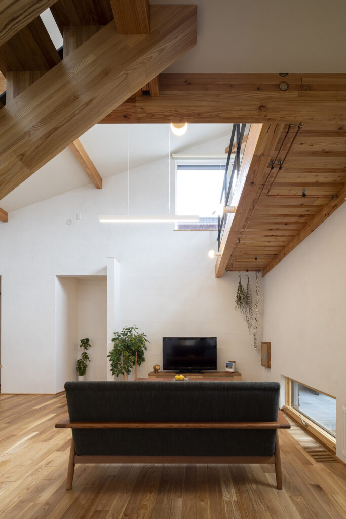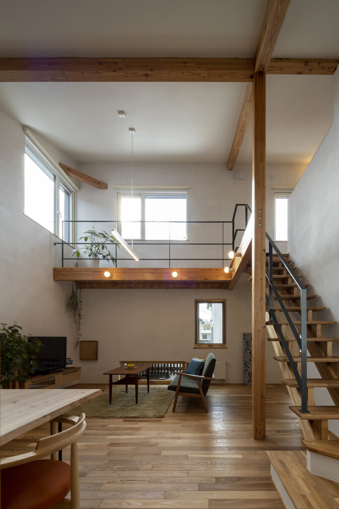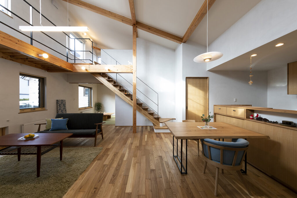 平屋ベースプランで吹抜から光を採り込む暮らし「.5noie」