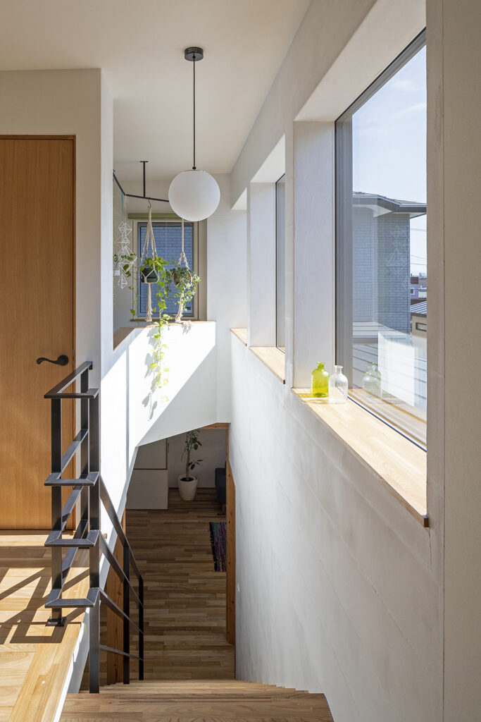 高窓から空を切り取る街中の家