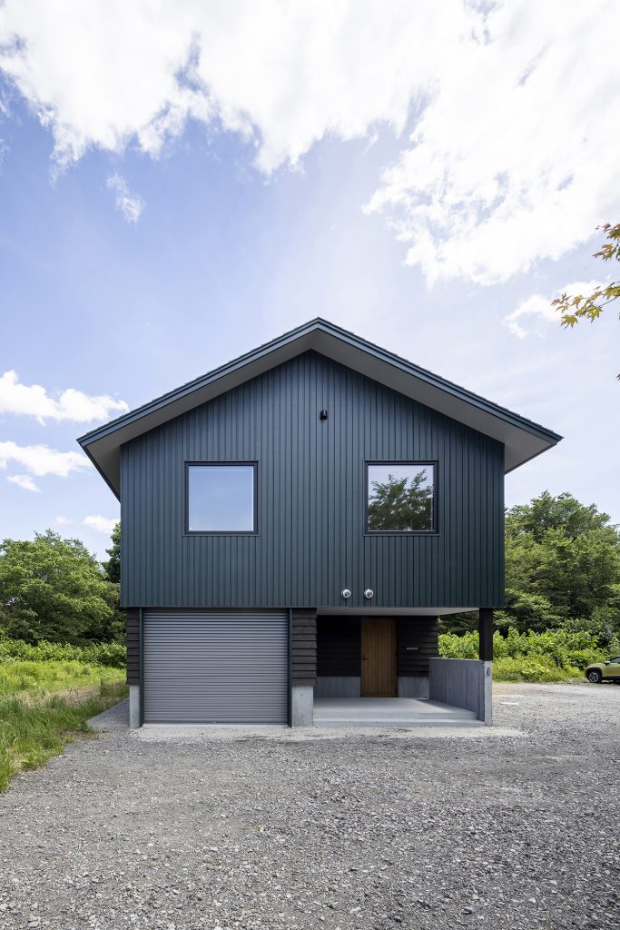 - 雪対策を軽減する組込車庫と切妻屋根の家