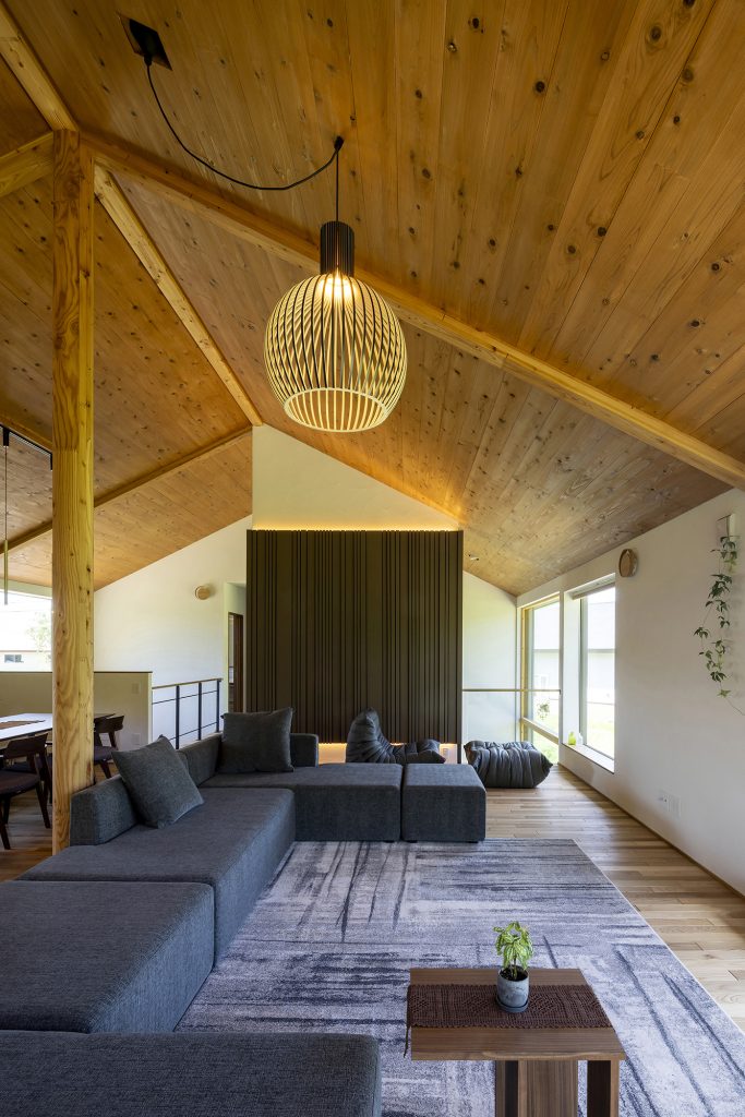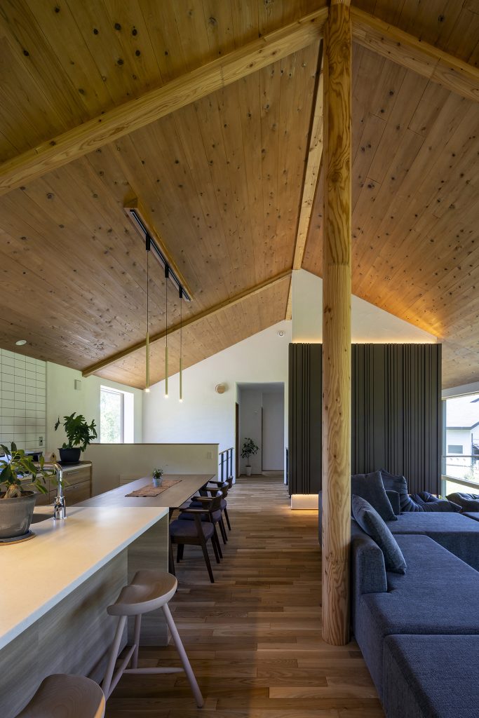 - 吹抜と勾配天井が連続する開放感溢れる家