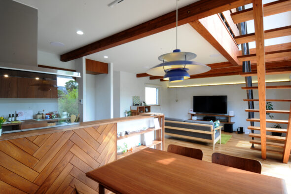 吹抜け中心にくるくる回れるつながりのある家「KOMAーYA」